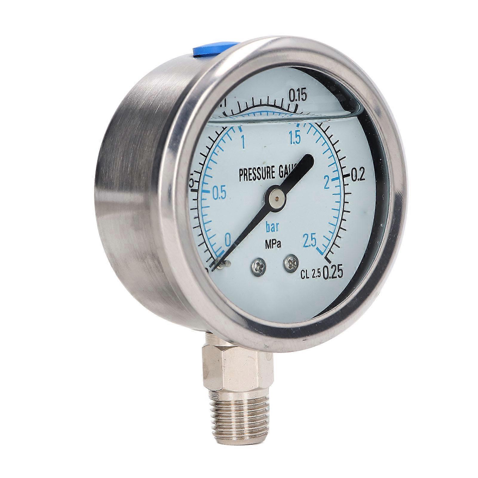 Single Scale Liquid Filled Pressure Gauge, Vacuum Pressure Gauge, Shockproof Radial Stainless Steel Case for Industrial 1/4in NPT(0~0.25Mpa) JY7H4
