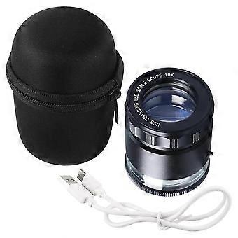 10X Illuminated Jewelers Magnifier Measuring Scale, USB Rechargeable 6 LED Lights, 25-27mm, Suitable