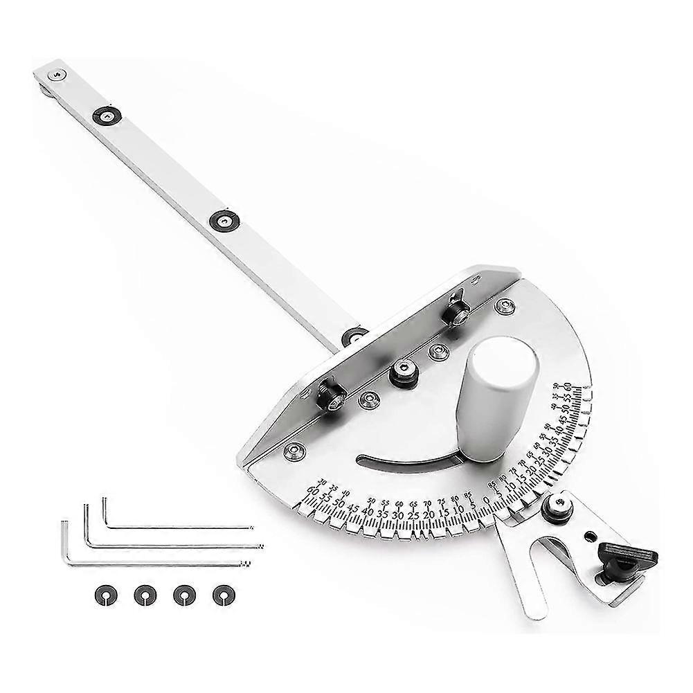 This miter gauge is a a high performance woodworking angle tool with a miter guide which mounts into the miter slots of your table saw, then guides the miter gauge parallel to the blade for high precision angle cuts and crosscuts. calibration, there are 13 stop grooves on the plus and (add an often used 22.5stop grooves), angle guide in 5 increments over a full 120 range. The table saw sled adopts laser-marking technology, which is anti-friction, and the scale is still clear after repeated use.The solid aluminum miter bar 17.7inch in length and is 0.35inch thick by 7inch wide, with 3 adjusting screws, which is more convenient to insert into the slot holes and fix the .The metal half round head with the 45 fence, put the cuts needs items to the fence, then adjust to the right angle, and cut it.Made from high quality material, this precision miter gauge fence is not only durable, accurate and saves setup time. the hex key wrench to adjust the plungers, meet your needs.The miter gauge suit for most standard table saw, compatible with brand table saws, band saws, router , disk and belt , the miter gauges are flat without burr, security, and hands-free. It is currently a must-have for family.color:SilverMaterial:MetalPackage Contents:1 x Precision Miter GaugeOnly the above package content, other products are not included.Note: Light reflection and different displays may cause the color of the item in the a little different from the real thing. The measurement allowed error is +/- 1-3cm.