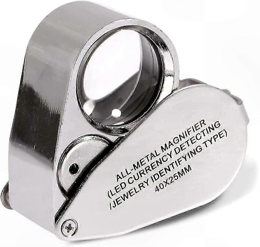 LED Lighted Folding Magnifier for Jewelry Inspection and Currency Detection, 40X Magnification Tool with Portable Design