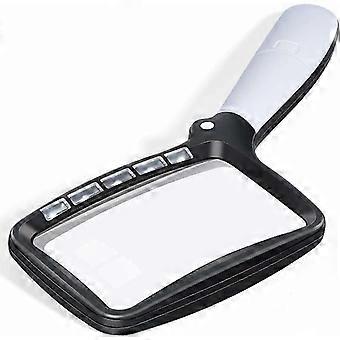 Rectangular Reading Magnifier with 5 LED Lights, 2x Magnification for Elderly or Visually Impaired, Checking Reading Craft Watch Parts