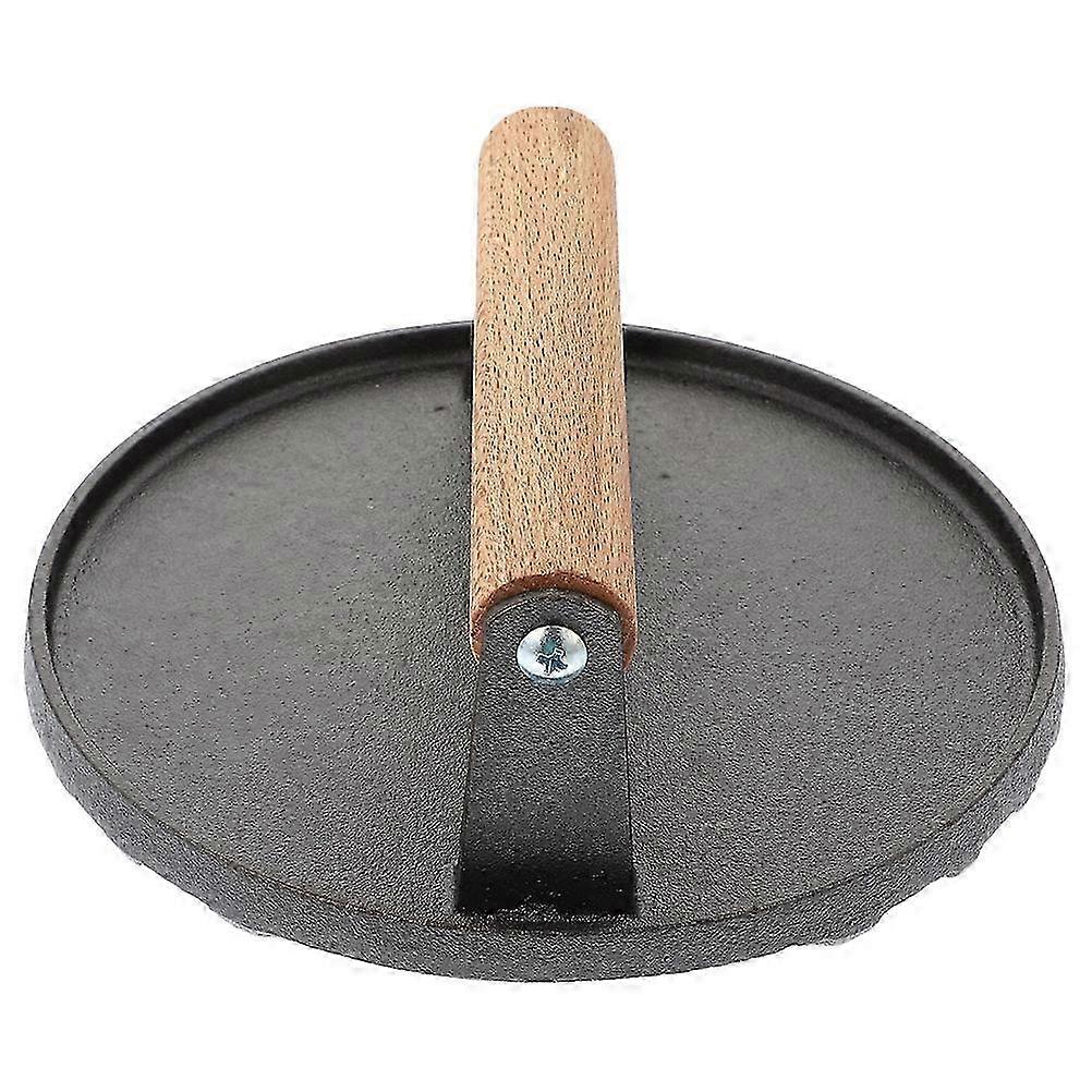 Iron Burger Press Wooden Handle Burger Press Round Grill Press Kitchen Burger Patty Maker17.5X7CMBlack SZRH A-R1442