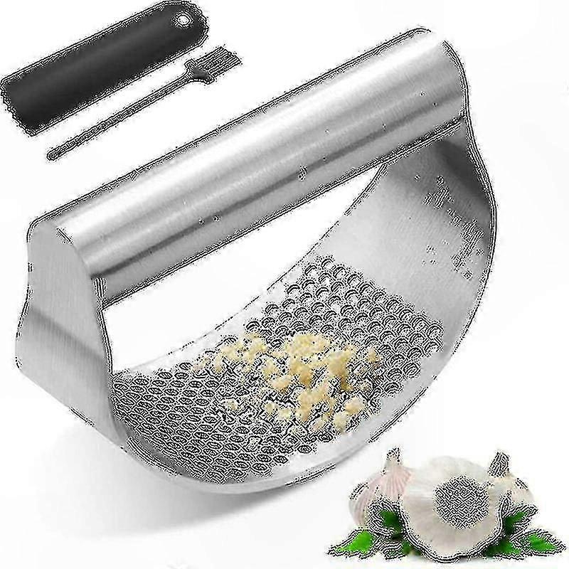 Stainless Steel Garlic Press with Comfort Grip Handle for Effortless Peeling and Crushing