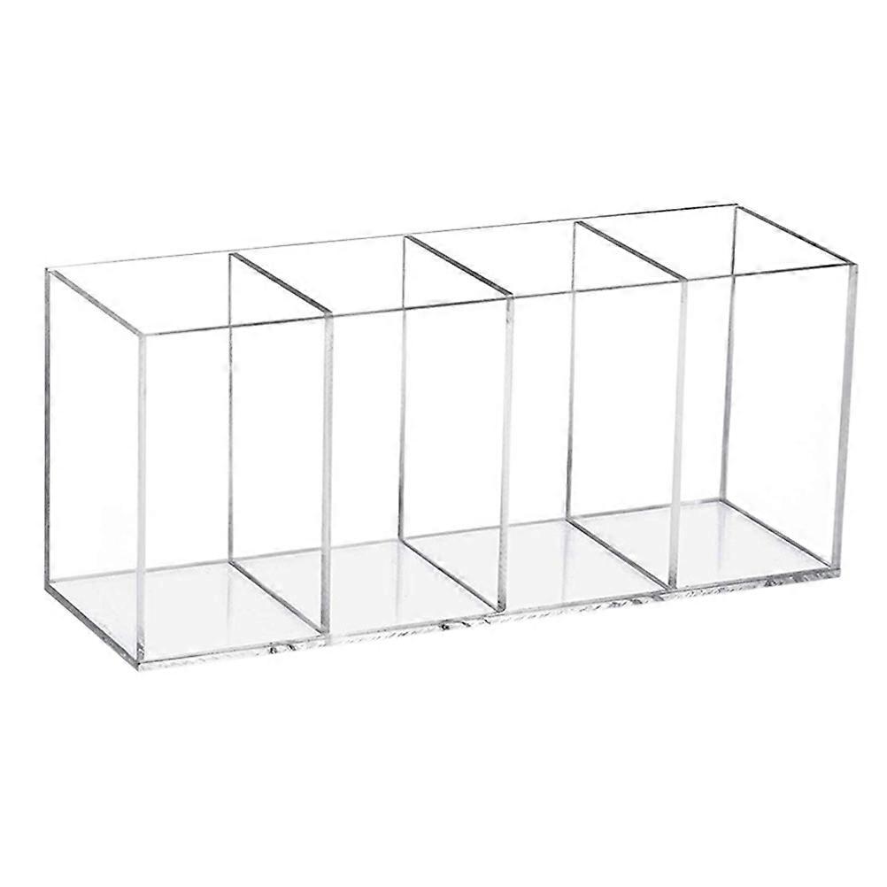 Office Pen Holder Acrylic Pen Stand 4-Compartment Cosmetics Storage Balcony 22.5X9.7X7.6CM 1Pack