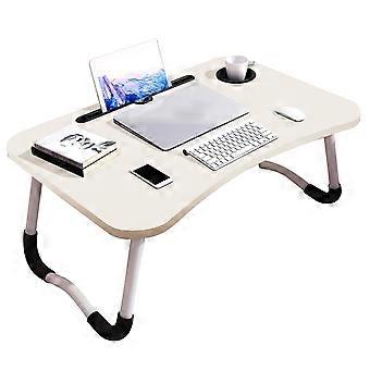 Kids Laptop Desk with Cup Holder Density Board Foldable Bed Table for Household BedroomWhite