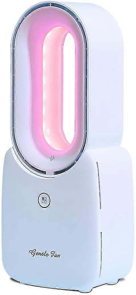 ouch Control For LED & Modes: This bladeless fan equipped with touch control to adjust wind speeds(four speeds) and LED DECORATIVE LIGHT to meet all your needs. Note: Please do not press the button, which may damage the touch button.Colorrful LED Decorrative Light: This desk bladeless fan built-in Colorful gradient LED lights to create a warm atmosphere at night. Not only can avoid the danger of wrestling, but also can leave it on the whole night to help you sleeping better.Built In High Density Battery: This bladeless fan also built-in rechargeable 2500mAh battery, can lasts up to 3~6 hours (depending on different wind speeds), USB charging also very convenient. Note: Please charge it before using.Use With No Worry: Innovative bladeless, safe air inlet grille, reference fluid dynamic design that increases air volume while blowing out soft air, and that ensures safety for baby, kids and pets. Large-slope turbine silent air duct, after inhaling air, generates powerful wind through turbocharging, place it in anywhere, creates a quiet, cool environment for you.Exquisite Gift for Summer:This bladeless fan looks exquisite, stylish, with practical function. Very suitable as a gift for children, elders, friends and lovers.