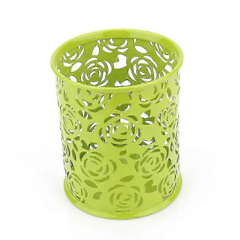 Office Desk Hollow Rose Flower Pattern Pen Pencil Pot Holder Container Organizer(Green)