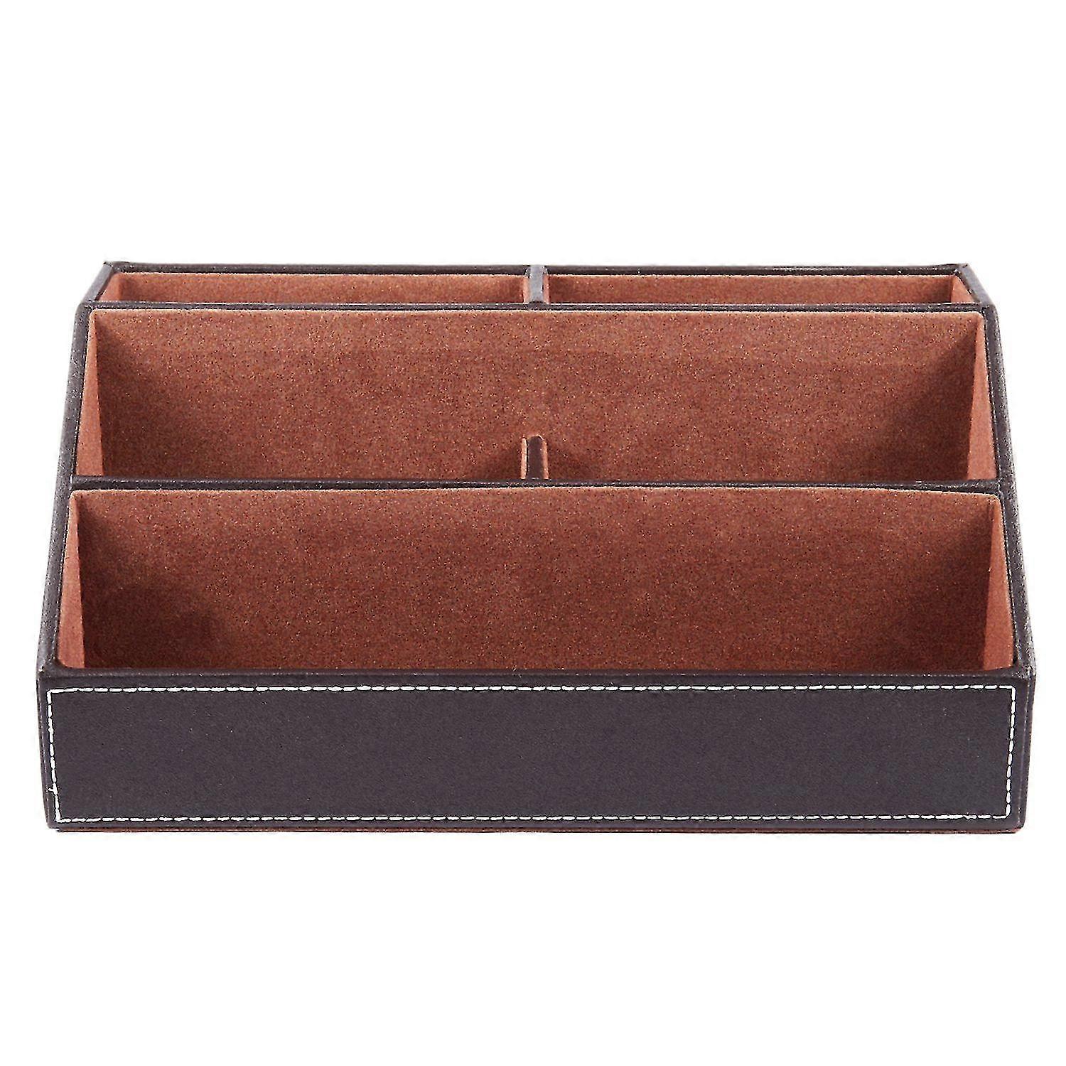 Home Office Wooden Struction Leather Multi-function Desk Stationery Organizer Storage Box, Pen/penc