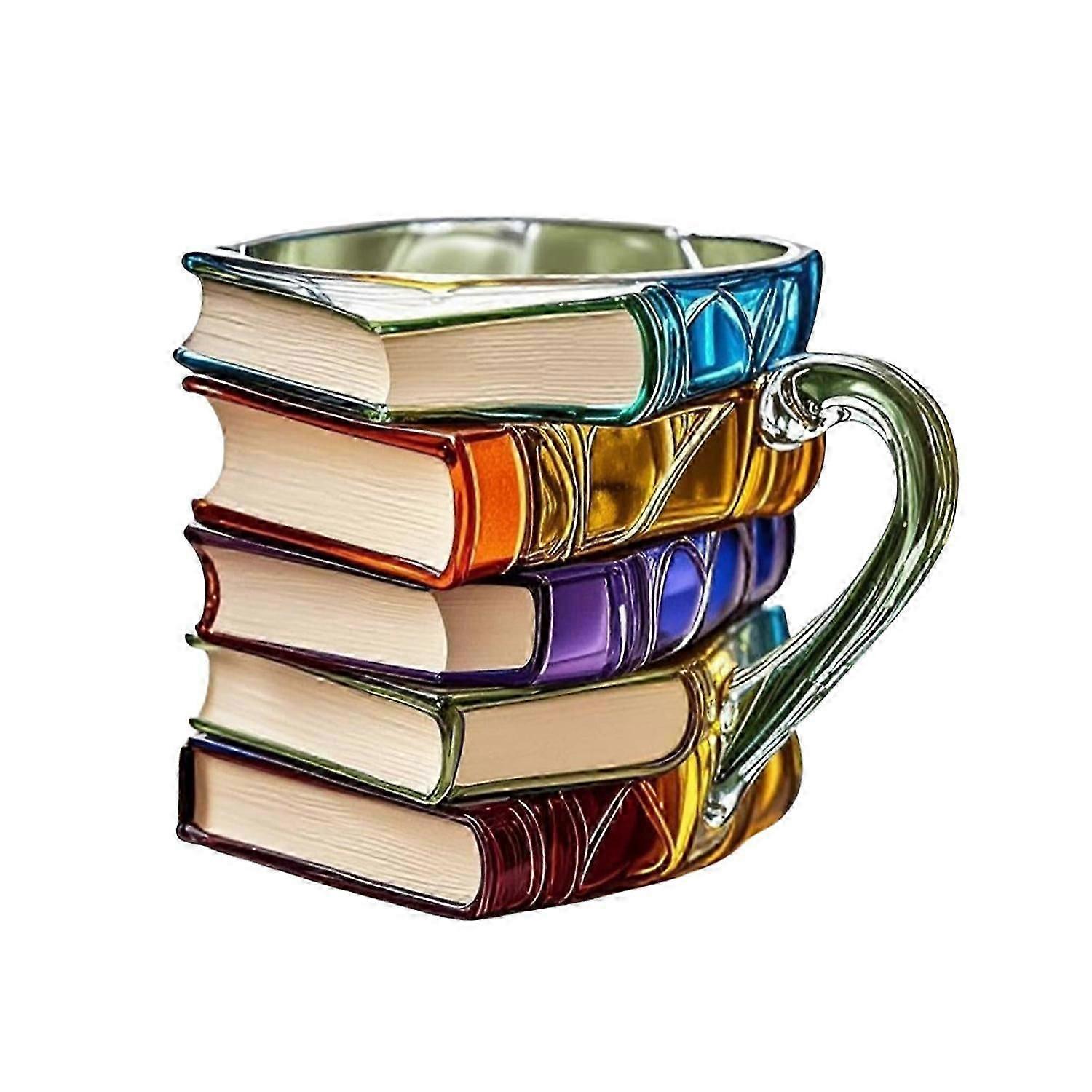 Stacked book novelty glass coffee mug for bookworms