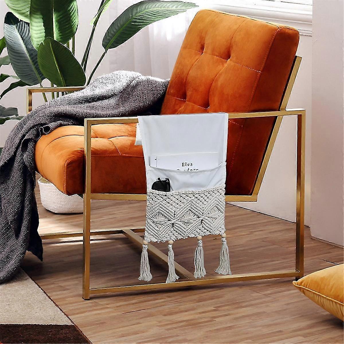 Macrame Sofa Remote Control Holder Couch Bedside Armchair Storage Basket Bag for Magazine, Book(B)