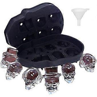 A Skull Shaped Silicone Ice Cube - 3D Skull Silicone Ice Cube - with Mini Funnel - Perfect for Whiskey Cocktail and Any Beverage (6 Cells)