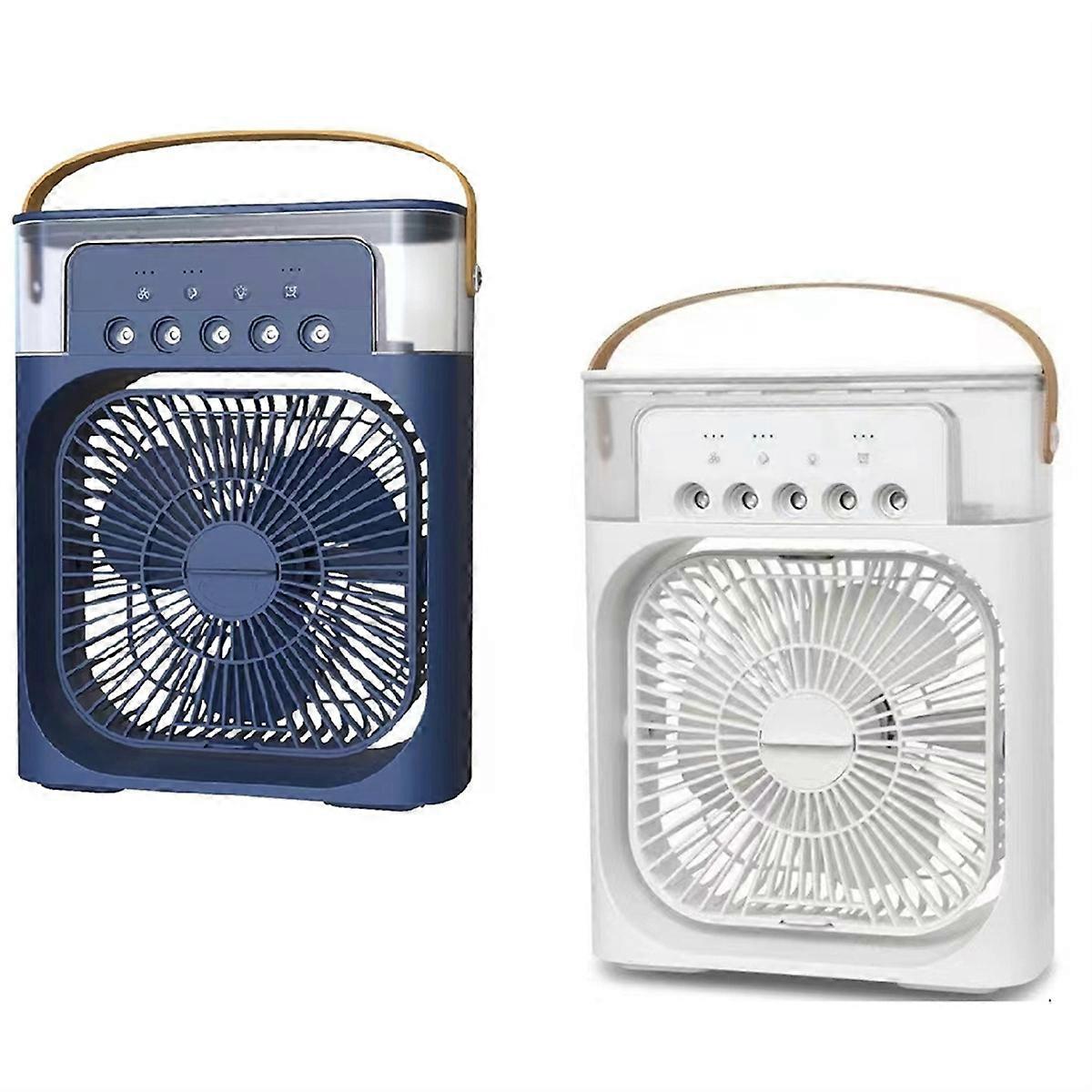 Large air volume 5 hole , double cool! 6 inch fan, super strong wind! 7 color lights, colorful life! Nano atomization technology skin-friendly large fog volume large fog volume such as rain like nourishment and cool coverage in every corner of the room. Three seconds of sudden cold cool without waiting nano ice fog with large air volume fast cooling, cool a step faster Add ice fast cooling 3 seconds to quickly drop 10°C use ice water atomization blowing cold wind to absorb the heat in the air duct, to achieve the cooling effect. The use of pure copper brushless motor, efficient operation efficiency life are excellent than aluminum wire motor ice-cold cool wind feeling soft and strong. Product size: 21cm x 9cm x 26cm Voltage: 5V Current: 2A Power: 10W Interface: USB-Type-c Water tank capacity: 600ml Atomization volume: 45ml/h-225ml/h time: 2.5-12 hours Material: ABS colour: White+Blue Package Contents: 2x Portable Humidifier Fan Only the above package content, other products are not included. Note: Light reflection and different displays may cause the color of the item in the picture a little different from the real thing. The measurement allowed error is +/- 1-3cm.