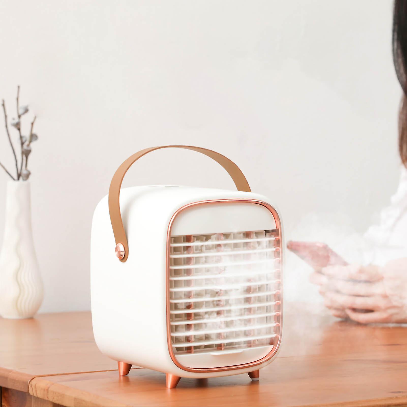 Silent USB Air Conditioner Cooling Fan Evaporative Cooler Portable with Carrying Strap for Home Office Car White