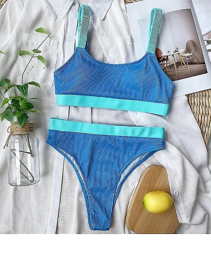 Outer Single Swimsuit New Bikini Blue Hot Selling Bikini Europe And America Swimwear Solid Color Swimsuit Split Sw