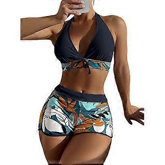 Swimwear Women's Split High Waist Flat Angle Lace Up Printed Solid Panel Swimwear