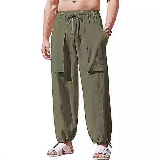 Summer men's workwear multi-pocket large size casual pants cotton and linen loose drawstring cuffs trousers