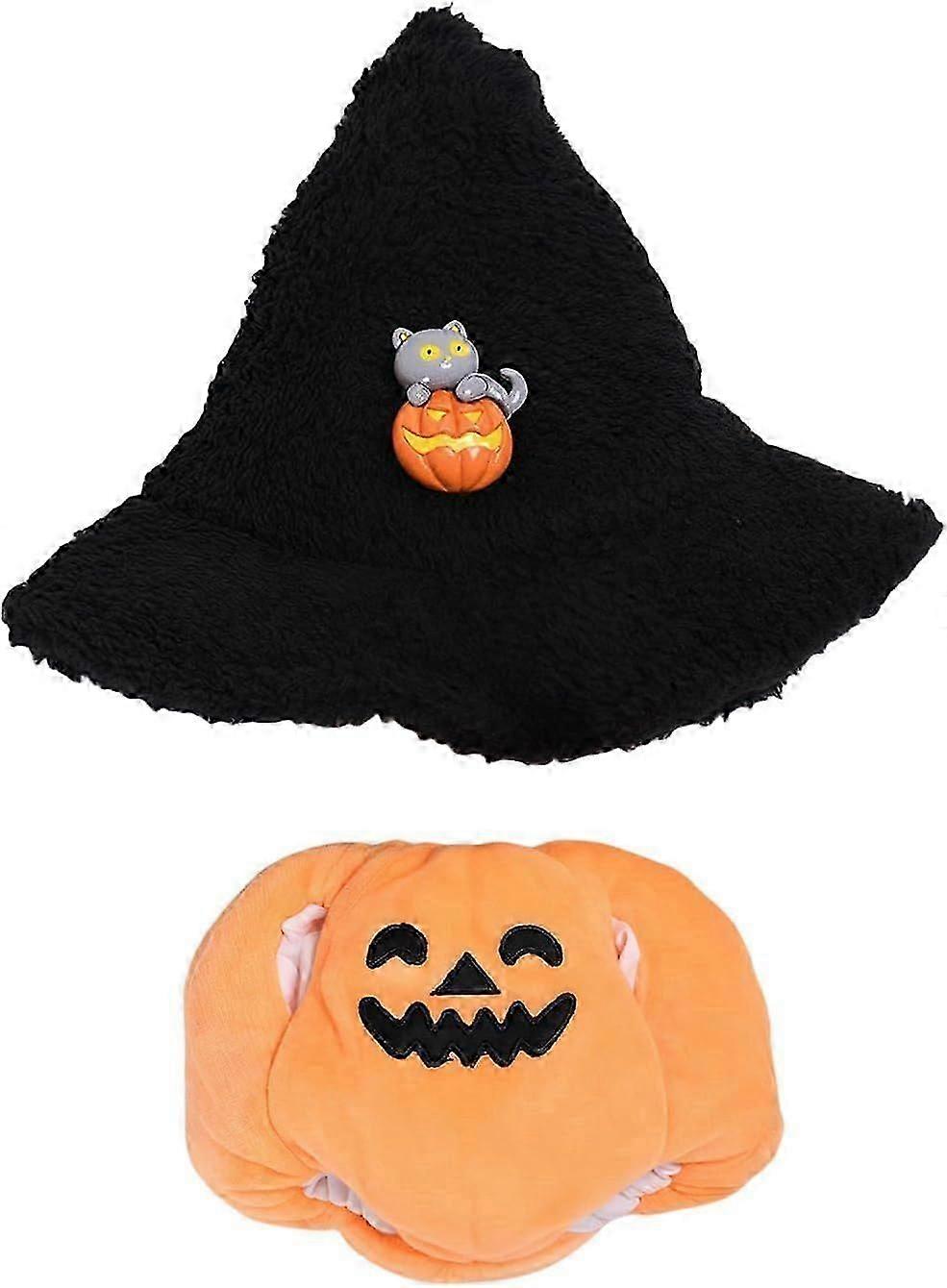 17cm Doll Clothes, Cute Stylish Halloween Pumpkin Outfit and Witch Hat 2-Piece Clothes for Dolls Outfit, Cute Halloween Dolls Clothes, No Doll Include