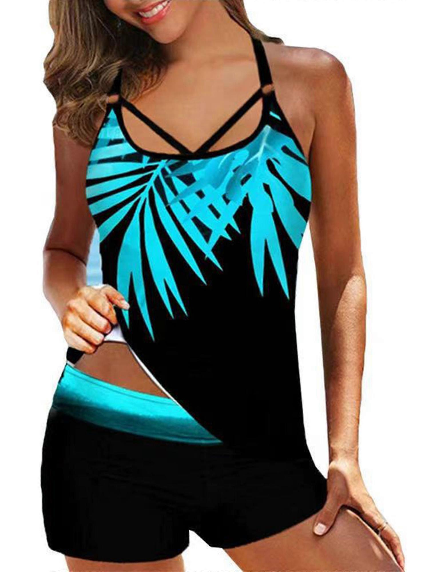 Women Swimsuit Tankini Bikini Set Tank Shorts Summer Beach Swimwear Plus Size