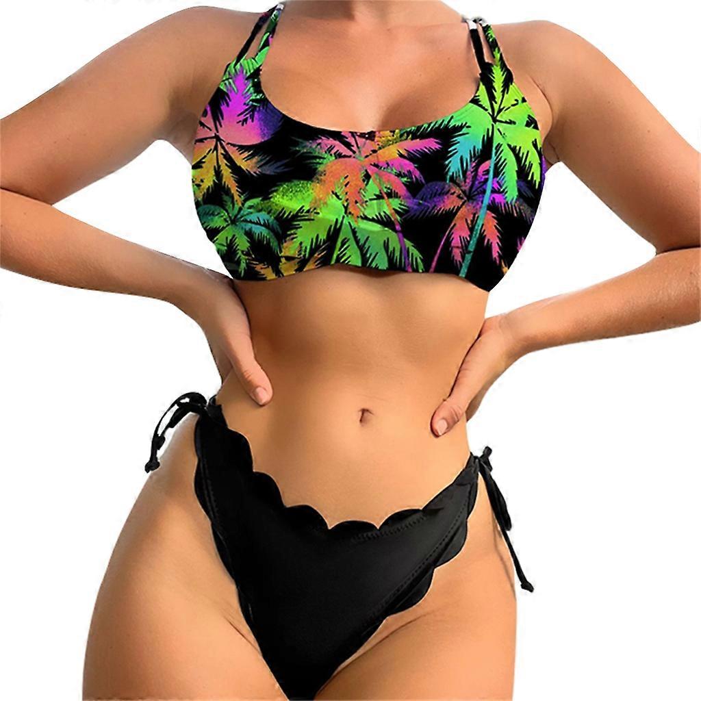 Womens Cross Back Swimwear 2 Pieces Split Bathing Suit-Scallop Trim Bikinis Set