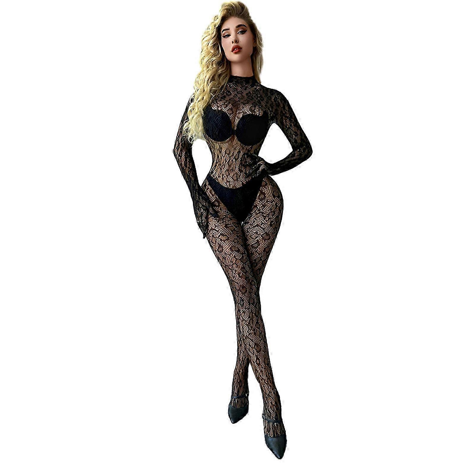 Long-Sleeve Fishnet Lingerie Nightwear with Mesh Bodysuit Tights for Women