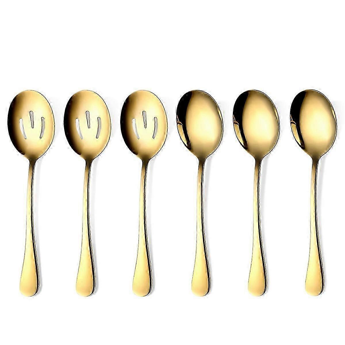 Gold Serving Spoons 6 Pieces, Stainless Steel Serving Utensils with Mirror Polished,3 Serving Spoon