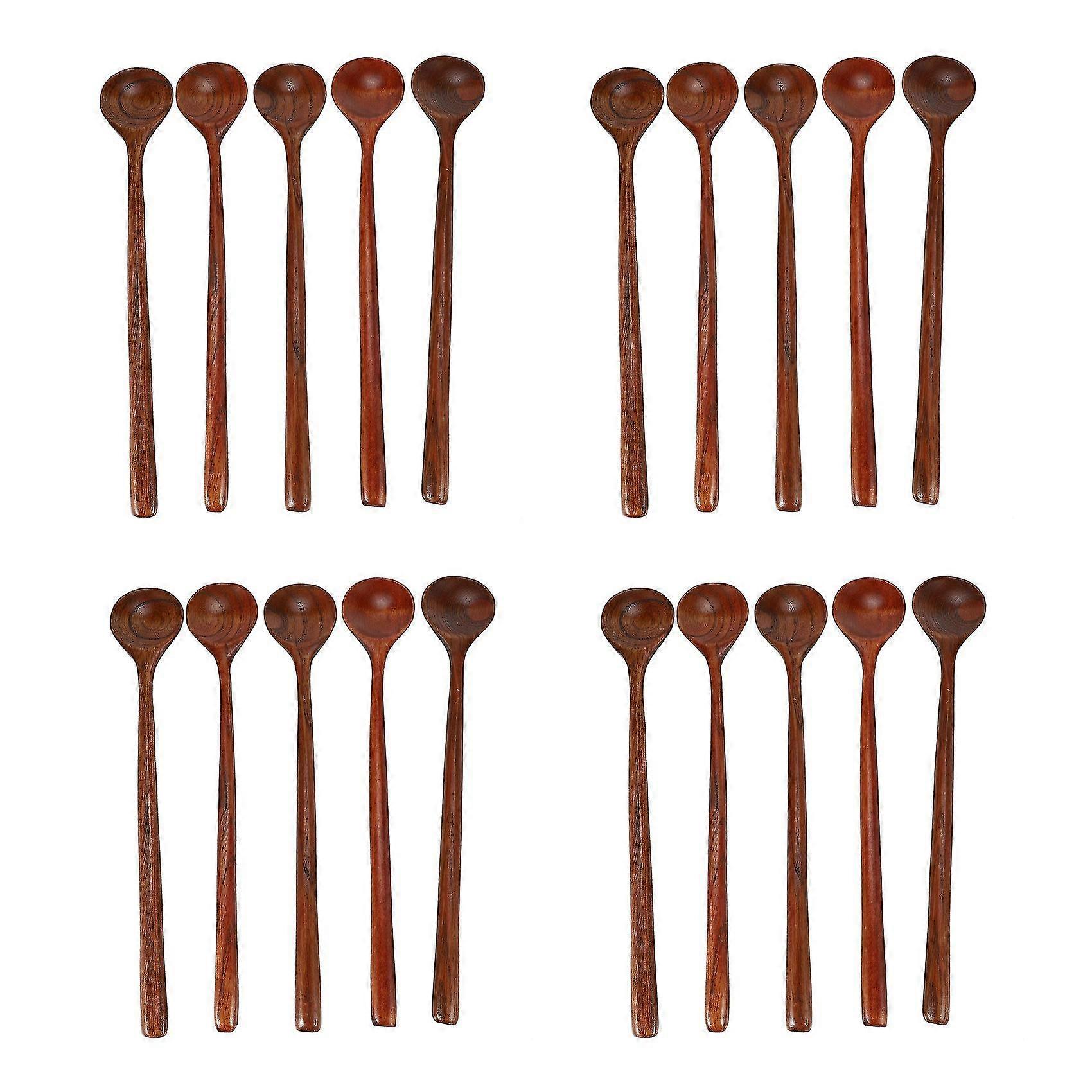 Long Spoons Wooden, 20 Pieces 10.9 Inches 100% Natural Wood Long Handle Round Spoons For Soup (kore