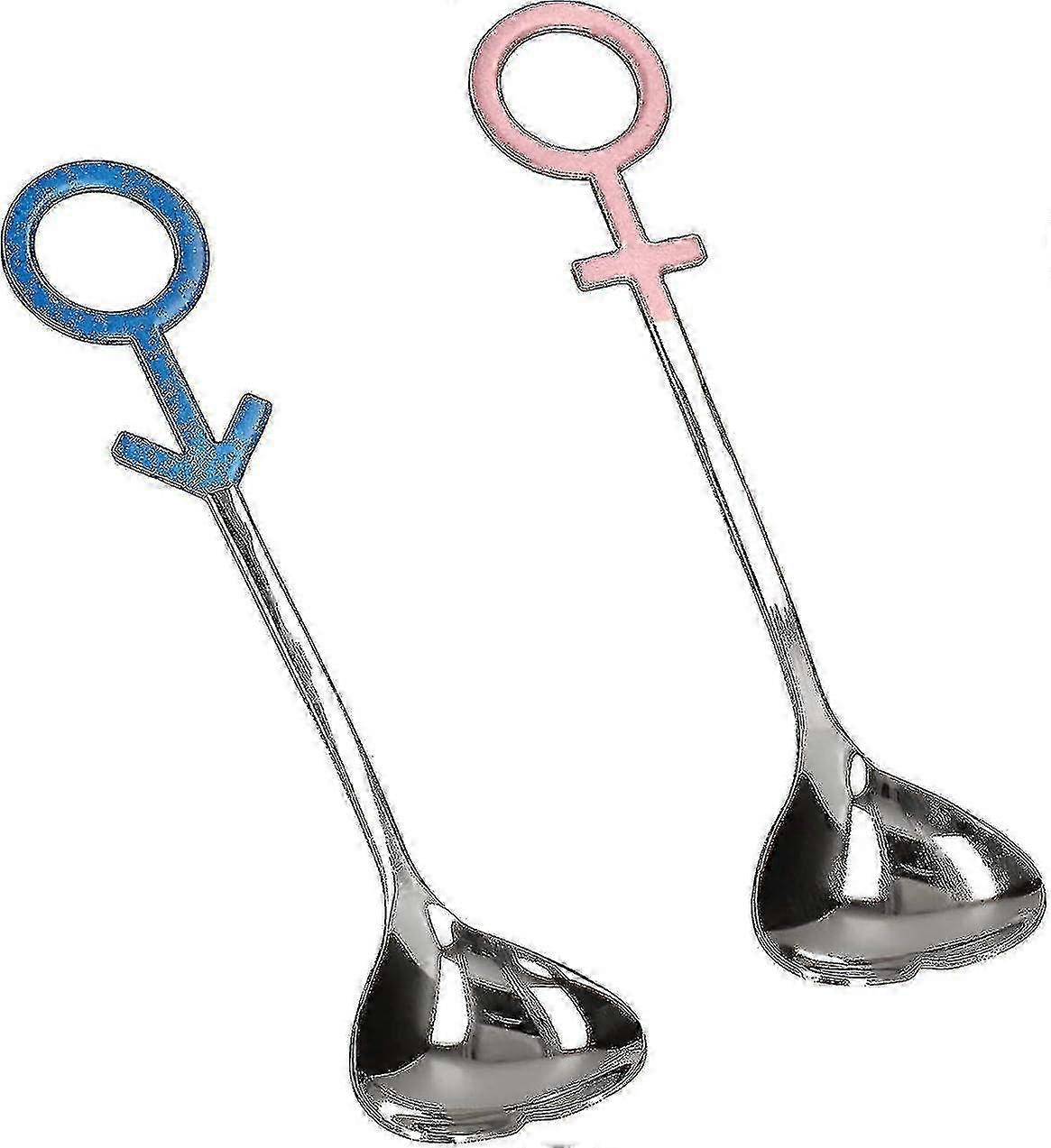Heart-shaped Spoons, Set Of 2 Teaspoons A Few Dessert Teaspoons, Ice Cream, Espresso 2pcs women powder Silver Love Spoons, Men blue Si PTW