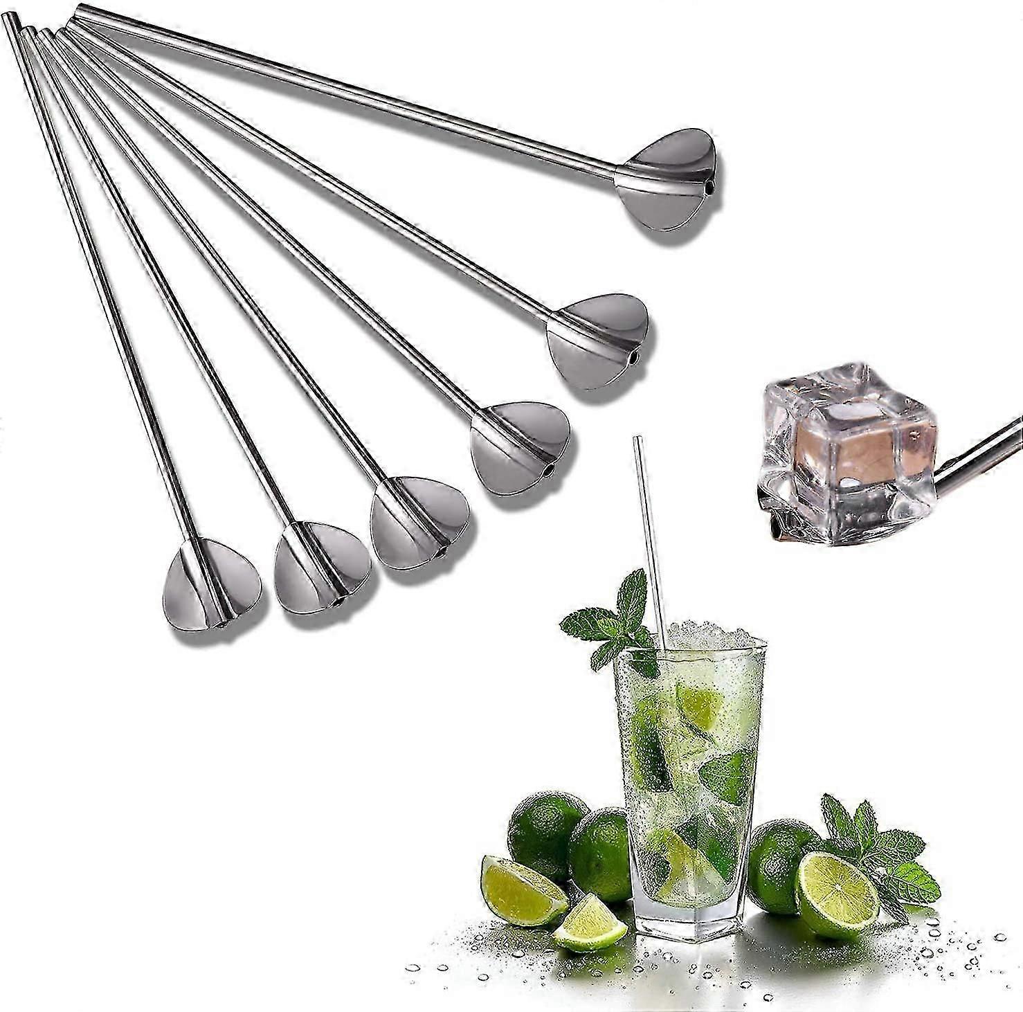 PIAO 6 pieces stainless steel straws spoons - Reusable metal straws with spoons, Lang Latte Macchiato spoons, cocktail spoons and drinking straws - he