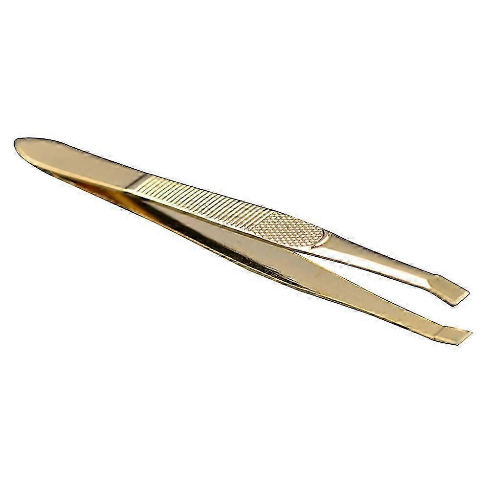 9x0.8cm Stainless Steel Gold-plated Eyebrow Tweezers with Eyebrow Comb Portable Eyelashes Extension Tweezers (Golden)
