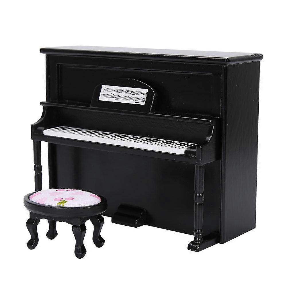 1:12 Doll House Accessories Mini Upright Piano Model Toy with Stool Simulation Furniture Black