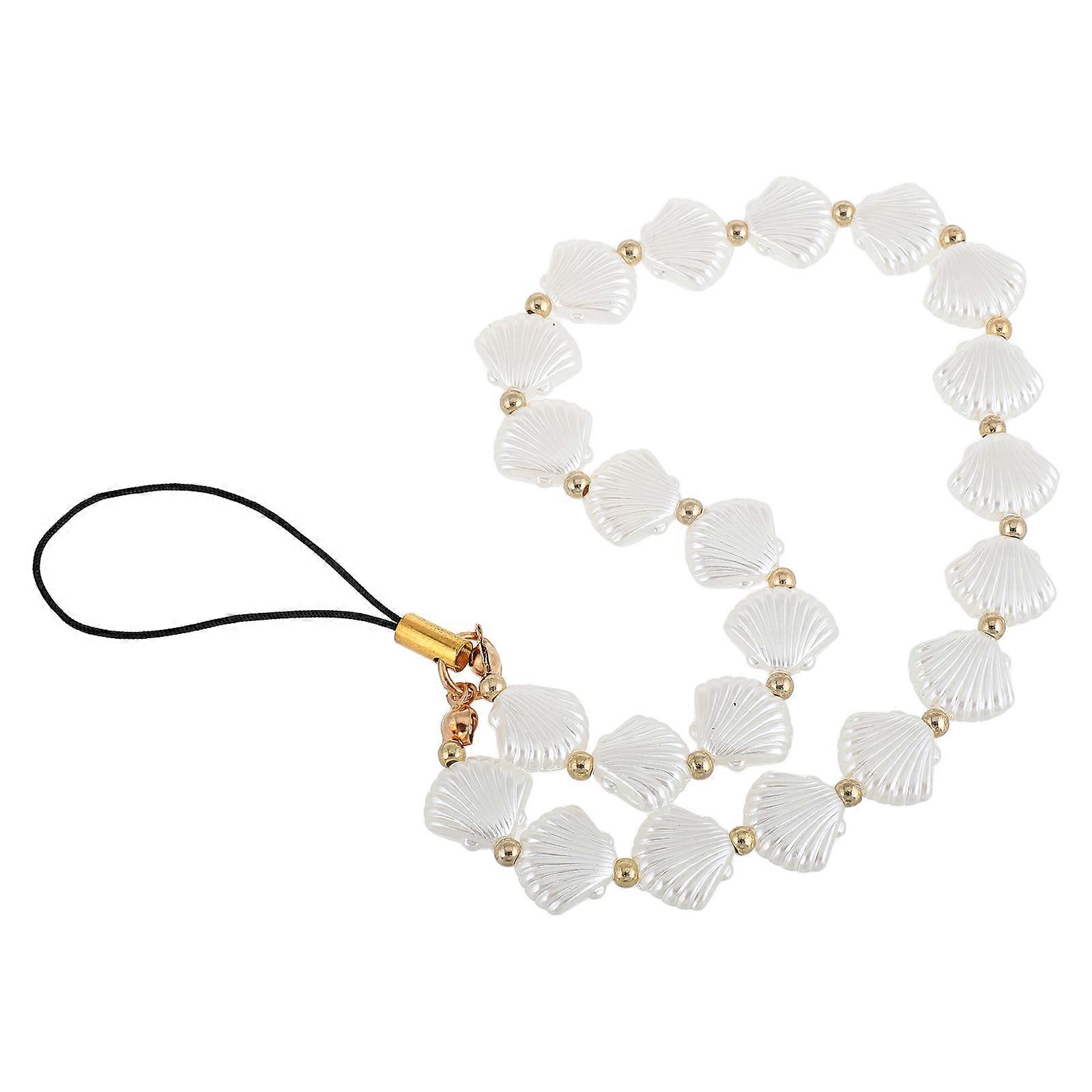 Phone Case Accessories Shell Phone Lanyard with Beads for Women White Resin 1Pcs