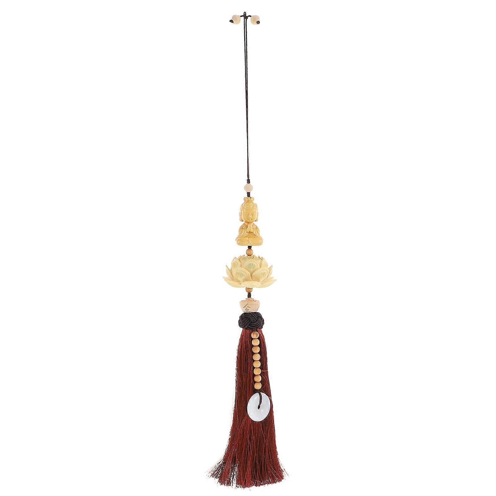 Car Rearview Mirror Accessory Buddha Lotus Shape Wooden Decoration 46X5.5cm 1Set