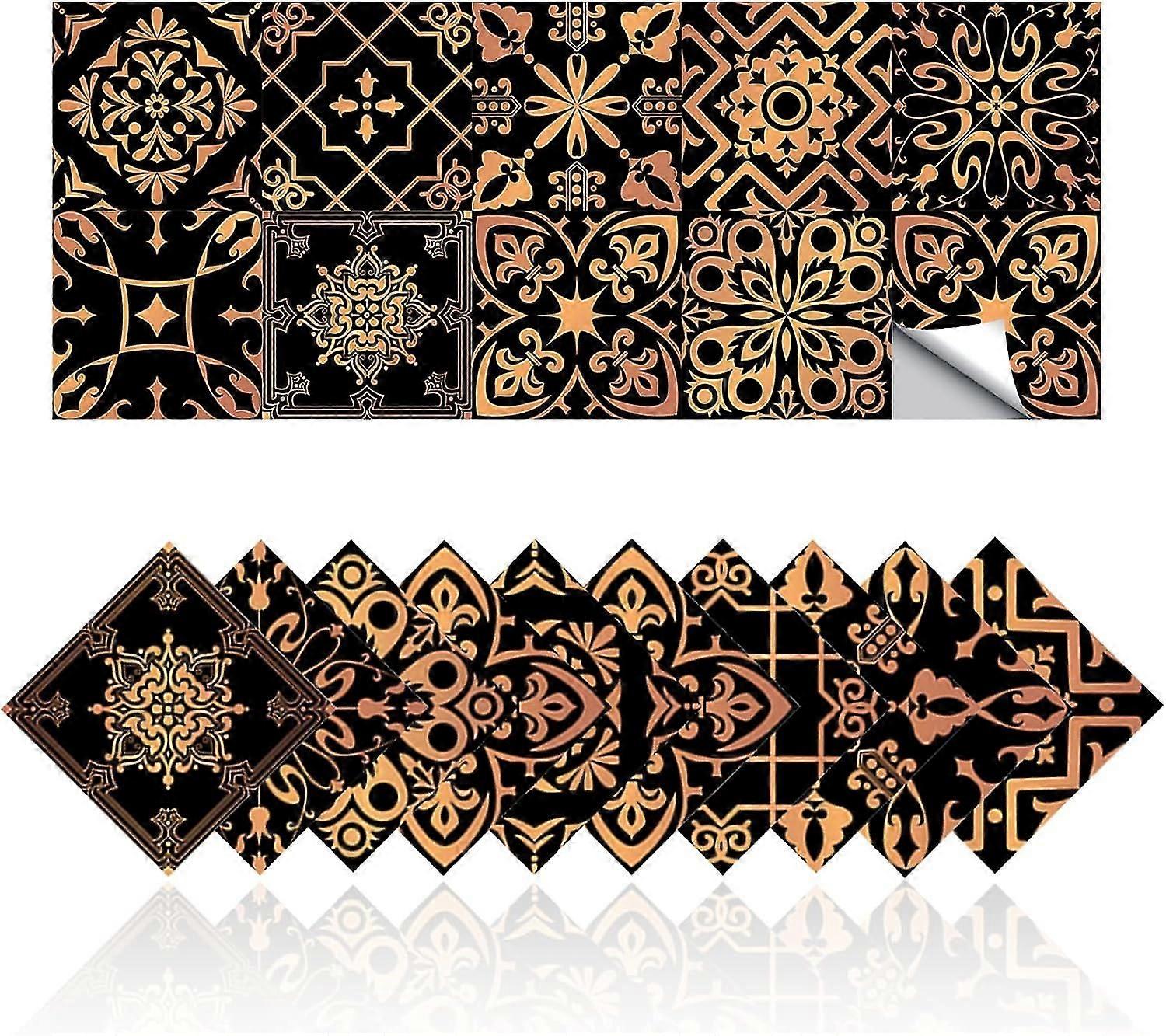 Tile Stickers, Adhesive Tile Wall Stickers Retro Gold Black for Bathroom Kitchen, Self Adhesive PVC Oil-proof Decoration Moroccan Style (20.15x15cm)