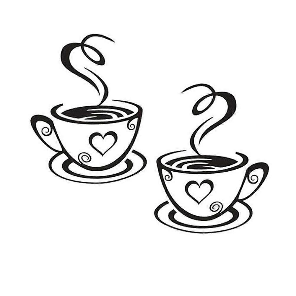Black Coffee Cup Wall Stickers 2Pcs For Homeowners Interior Designers Room Cafe Window Decoration