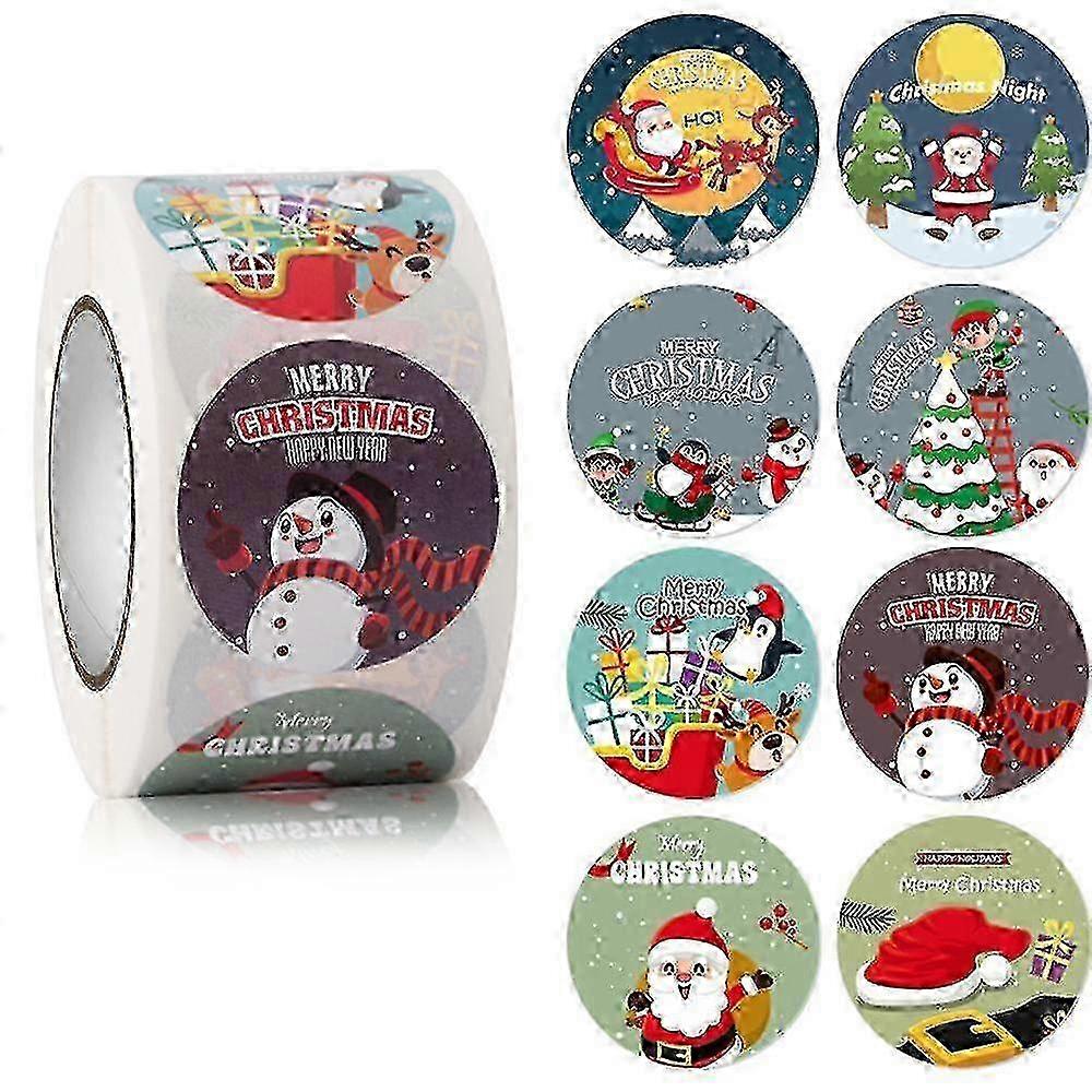 Merry Christmas Background Stickers In Roll , Round Size Perfect For Decoration Stickers , Gifting And Envelopes Sealing