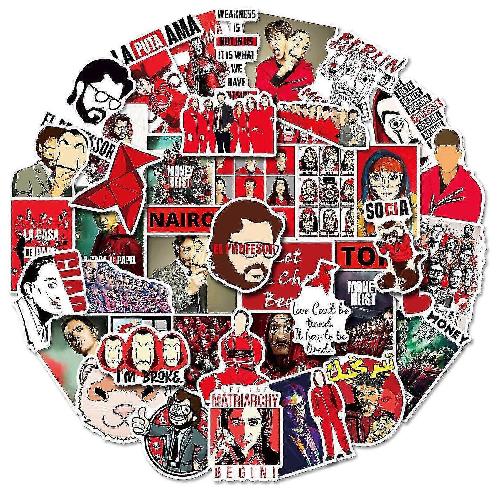 Money Heist Stickers, Set of 50, Waterproof and UV Resistant, Great for All Your Gadgets