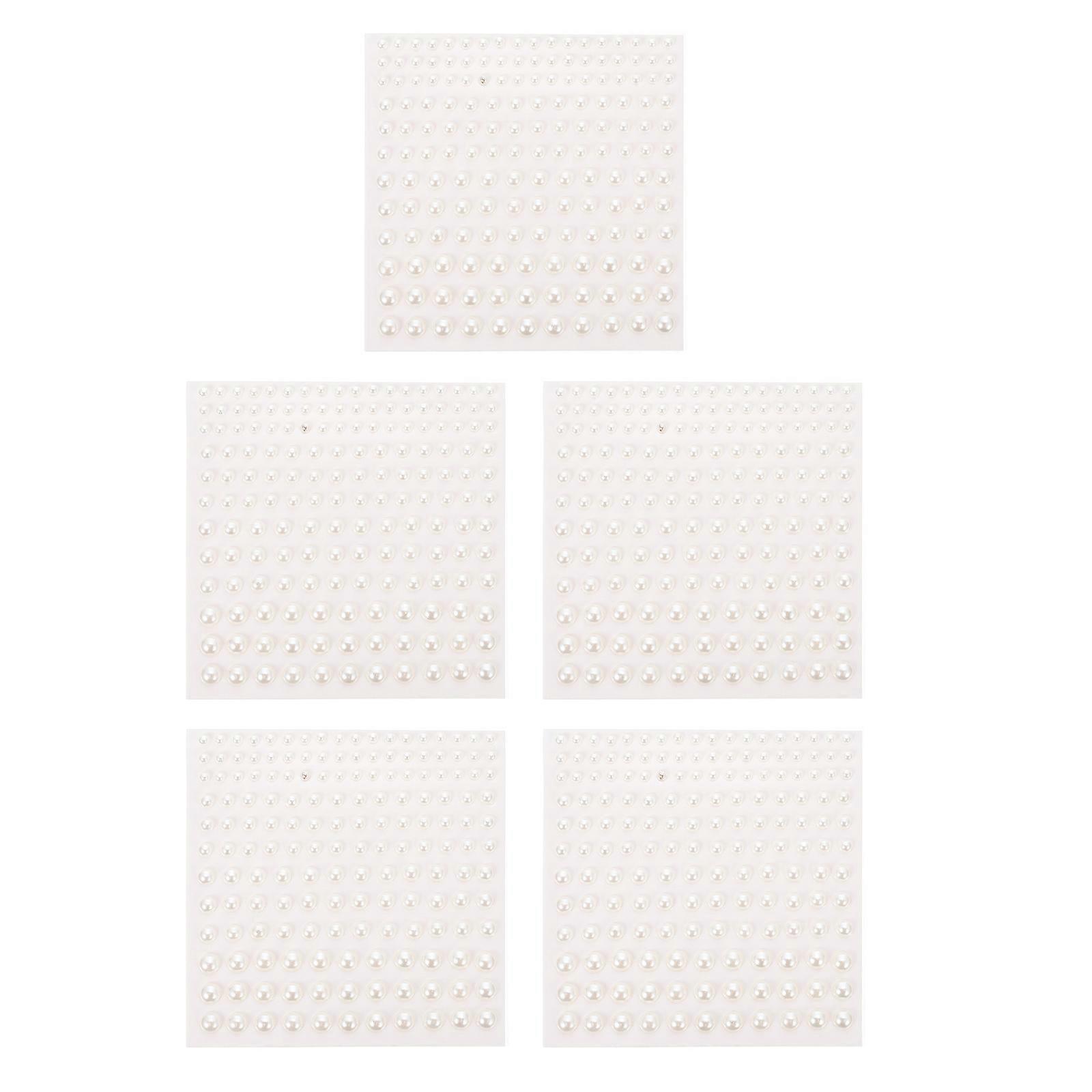 Face Pearls Stickers Adhesive Pearl Stickers Flat Back Pearls Stickers Diy Decorations White 0.5X0.5cm Self-Adhesive 5Pcs