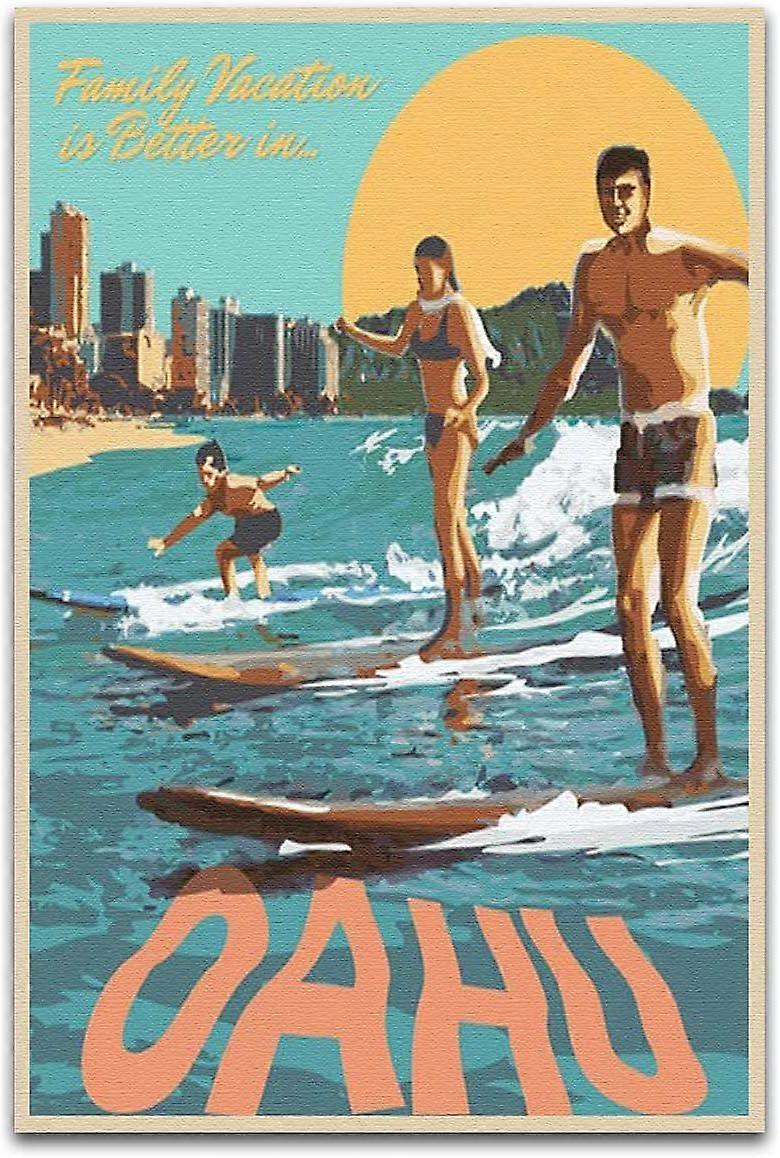 Oahu Hawaii Travel Poster, Oahu Hawaii Surfing Print, Hawaii Poster, Vintage Travel Poster, Decor,Wall Decor 16x24inch(40x60cm)Unframed