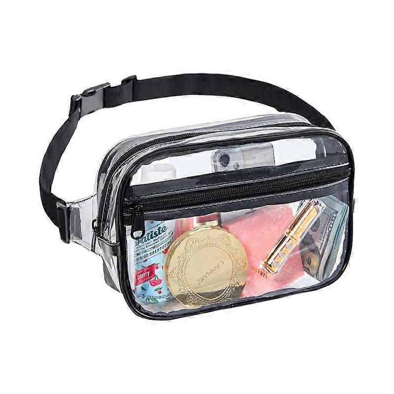 STADIUM APPROVED: The stadium approved clear Fanny pack is 8.3 x 6 x 2.8 inches. Allows you to quickly pass through stadium security. Comply with all clear bag policies (approved size :12x12x6 inches). Great for concerts and any stadium sporting event. PREMIUM MATERIAL: This Clear Fanny pack is made of premium transparent TPU material which is strong and durable. Waterproof TPU is spill proof or drip-proof. It always keeps your items safe and dry on rainy days. LARGE CAPACITY: 2 pocket zipper compartment and 1 zipper back pocket, both with reinforced stitching. These pockets can easily carry anything you might take such as water bottles, keys, wallets and cell phones. ADJUSTABLE WAIST BAND: Great Fanny pack with adjustable belt, sturdy and reliable buckle, ranging from 25.5-42 inches. The quick slip buckle instantly adjusts to the length you need. Besides, it will stay at the length of your choice without any loosening. The design of buckle is easy to disassemble, too. SUITABLE FOR VARIOUS OCCASIONS :This See Through Fanny pack is ideal for stadiums, sporting events, exercise, concert, hiking and perfect for concerts, etc. That is a awesome gift for your family and friends. Our bags is easy to clean, just wipe the stain with a wet cloth.