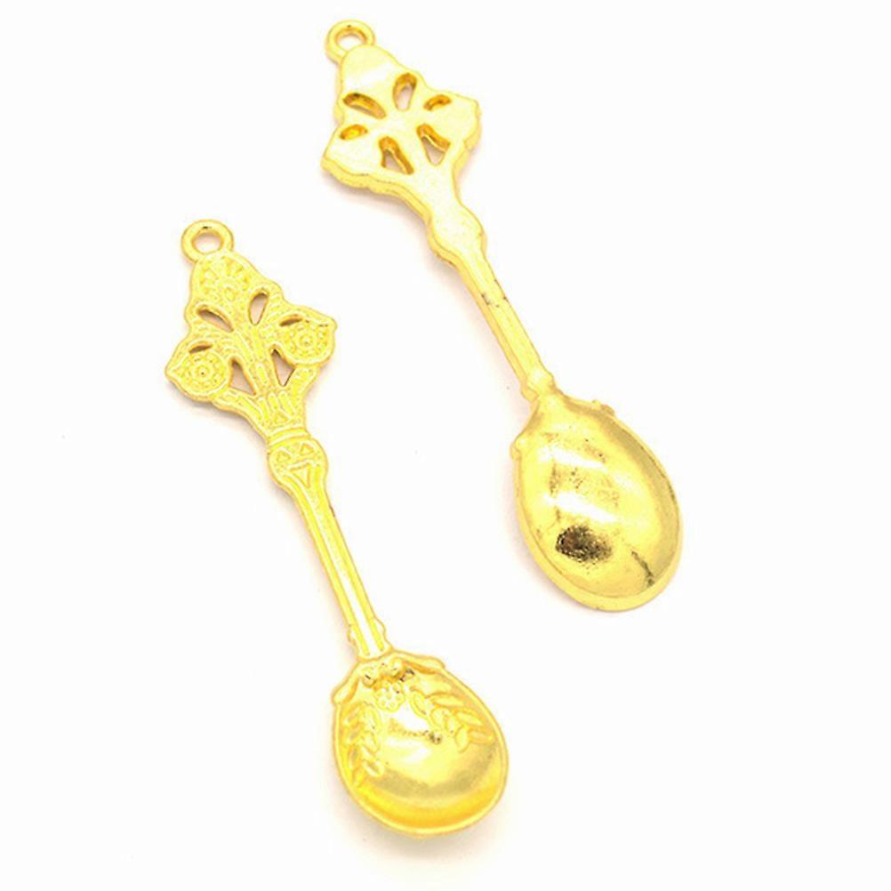 Spoon Shape Pendant Handmade Crafts Diy Alloy Necklace Earring Accessory For Kids Girls Golden 60Pcs