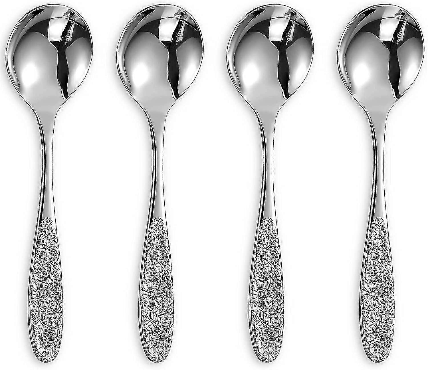 Sunflower Soup Spoon, Set of 4, 18/10 Stainless Steel, Silver Visions Bouillon Spoon,, Fine Mirror Polished