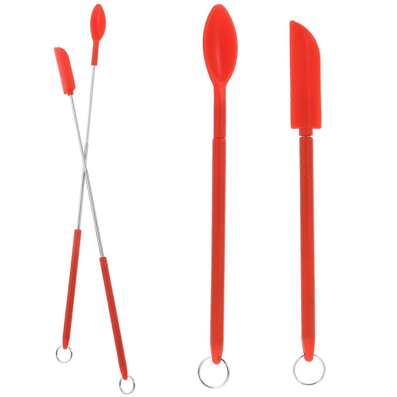 Mini Spatula for Cosmetics Makeup Scooping Tool 14.2x1.4cm Red Silicone 1Set