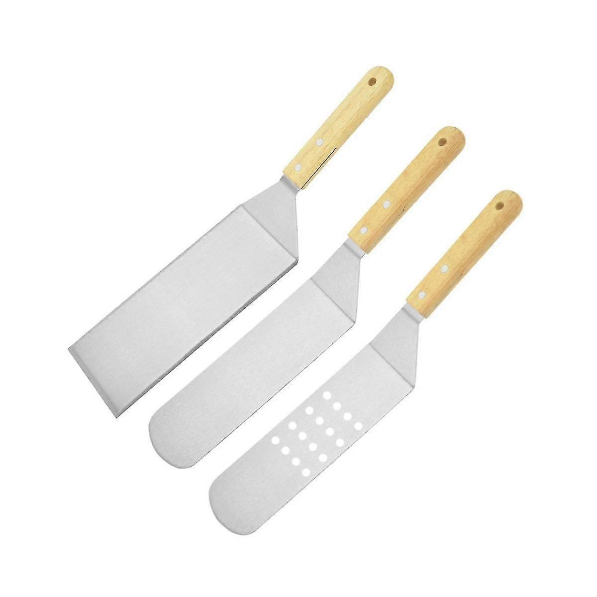 Sturdy Stainless Steel Spatula With Strong Wooden Handle - Professional Food Scraper For Grilling