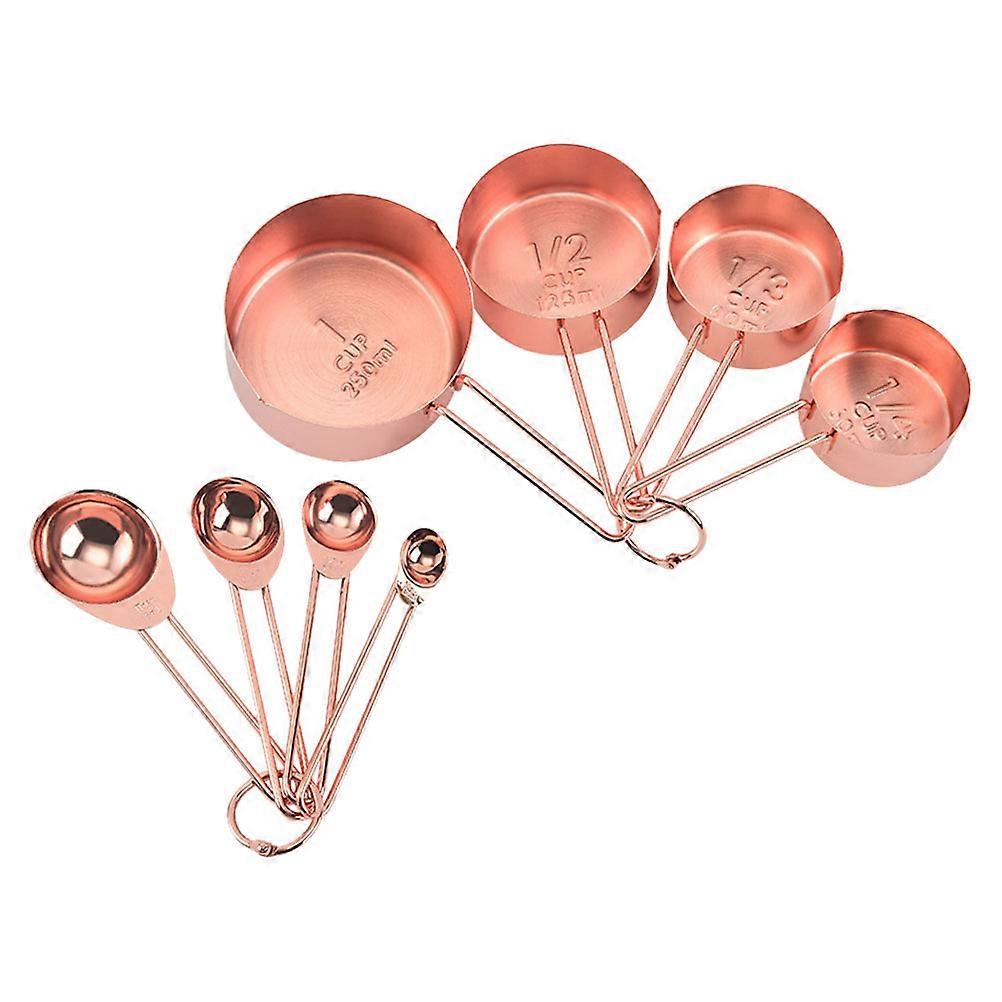 Measuring Spoon for Kitchen 8Pcs Stainless Steel Baking Measuring Cups with Handle Design and Golden Color for Home Cooks and Bakers