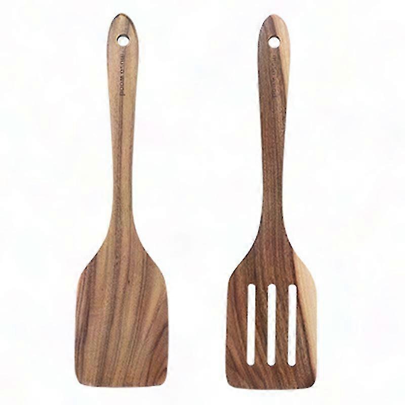 Teak Wood Spatula for Non-Stick Pans - Solid Wood Cooking Spatula with Slotted Design