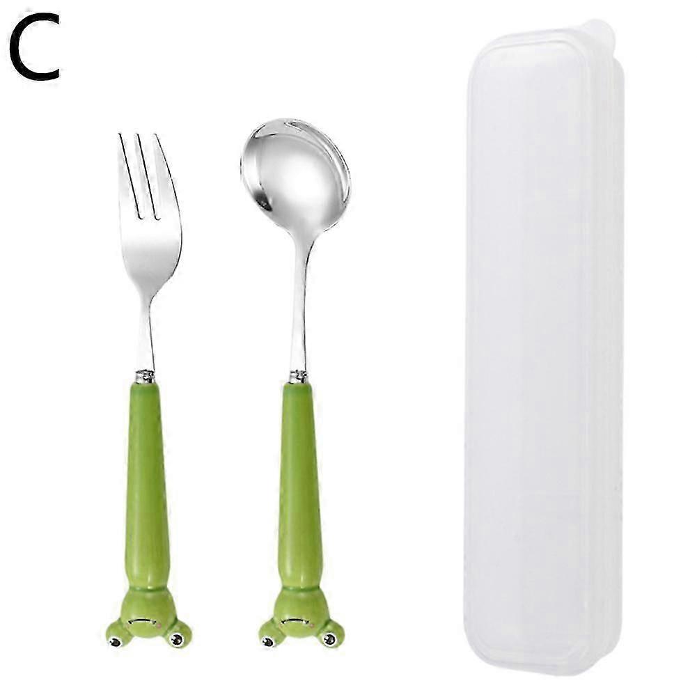 Stainless Steel Spoon and Fork with Ceramic Cartoon Animal Handle