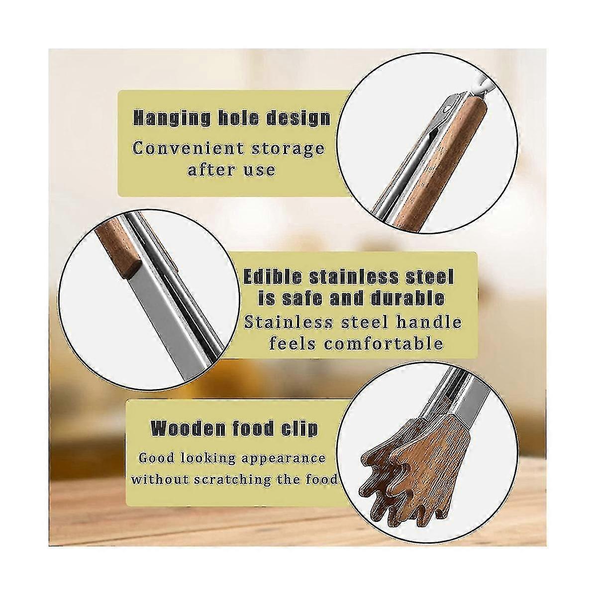 Wooden Kitchen Tongs Palm Clamp Cooking Tongs, Non-stick High Temperature Resistant, Stainless Stee
