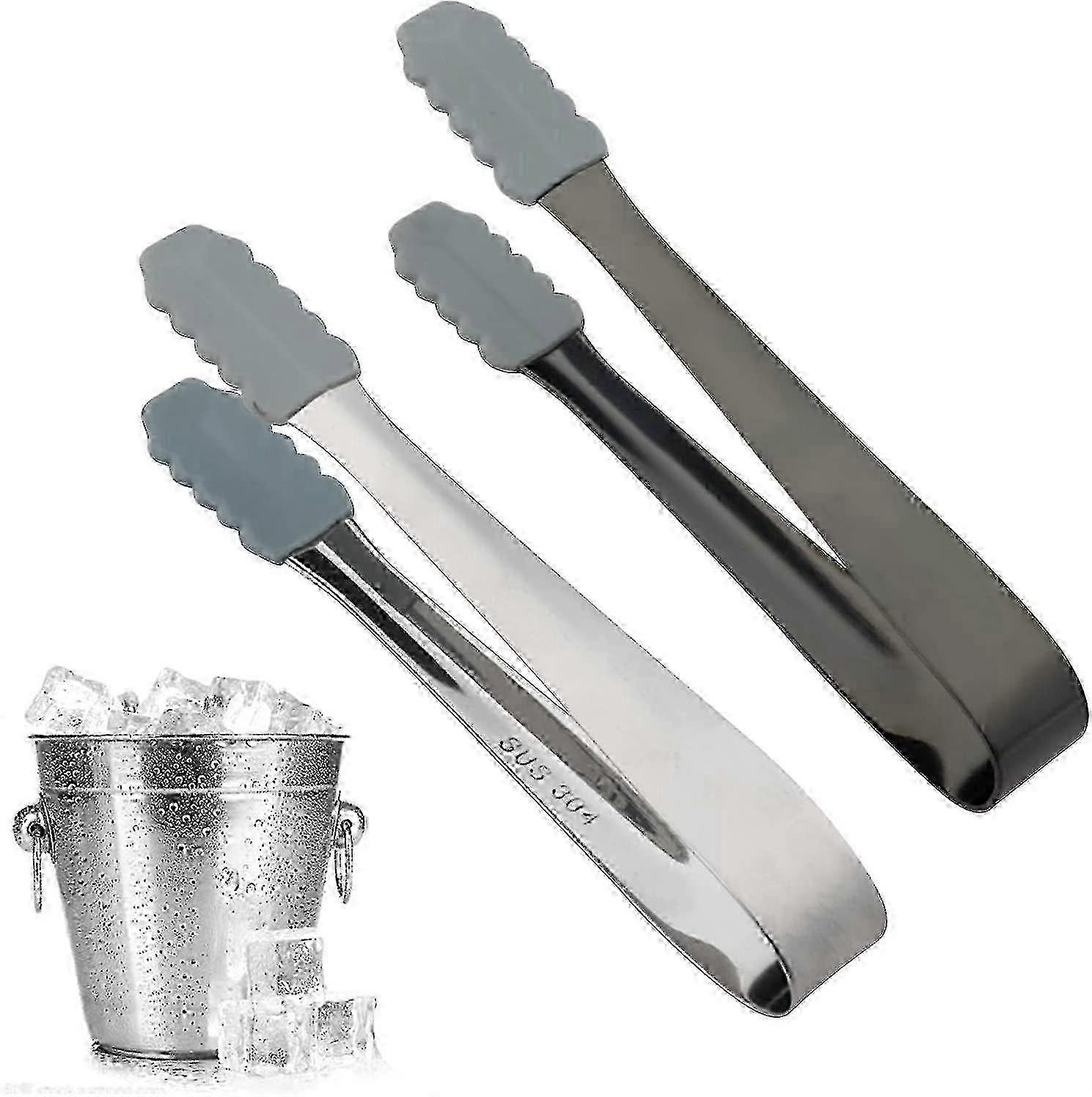 Ice Tongs, 2 Pcs Sugar Tongs, Silver And Black Ice Cube Tongs 13.3 X 1.6 Cm Stainless Steel Sugar Ice Tongs With Non-slip Silicone Head For Family Res