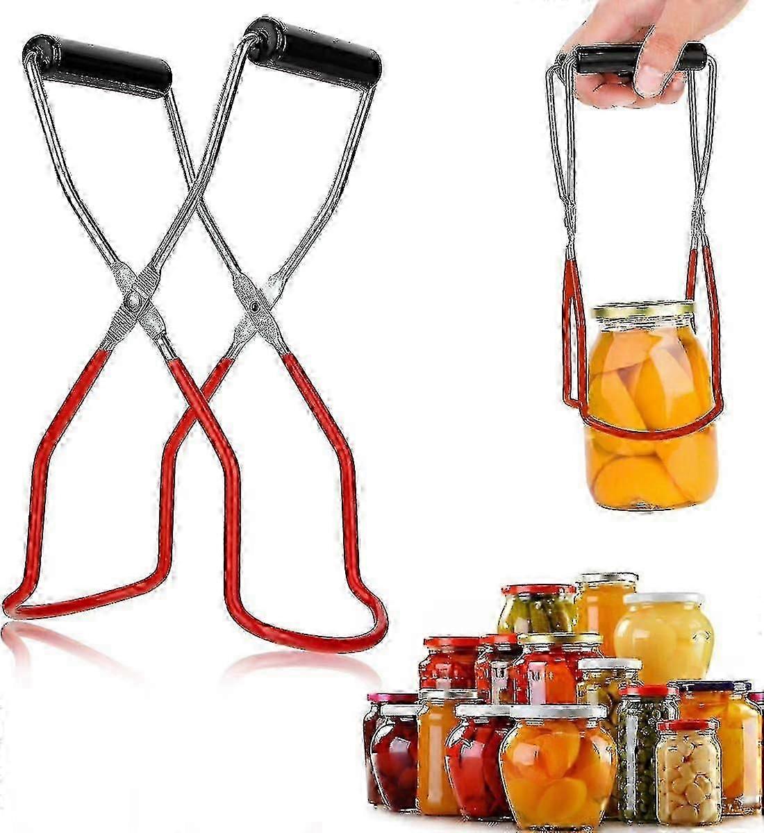 Jar Tongs, Anti-Scald Clip, Jar Tongs, Stainless Steel Canning Jar Lifter Tongs with Handle Grip for Hot Canning Jars and Canning Jars (Red)