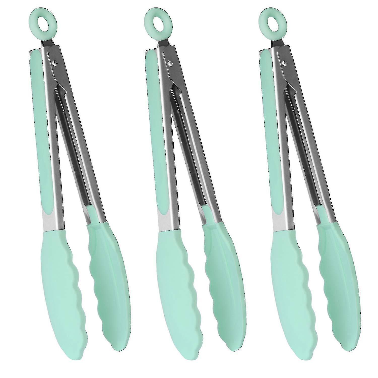 9" Kitchen Premium Silicone Tongs With Non-slip & Easy Grip Stainless Steel Handle, Set Of 3 Green